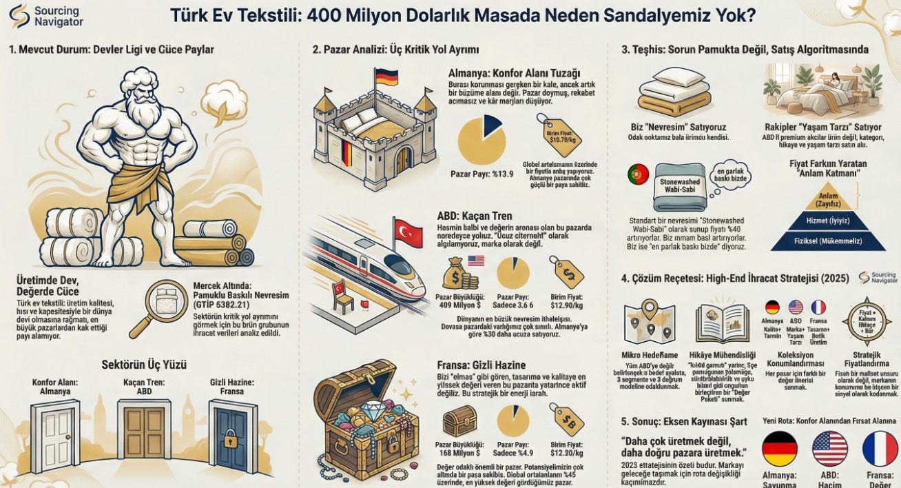 Türk ev tekstili sektörü üretim kalitesi, hızlı terminleri ve devasa kapasitesiyle tartışmasız bir dünya devidir. Ancak veriler gösteriyor ki: