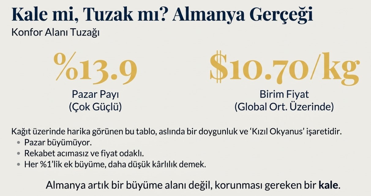 Almanya pazarında %13.9’luk çok güçlü bir paya sahibiz. Birim fiyatımız $10.70 ile global ortalamanın üzerinde.