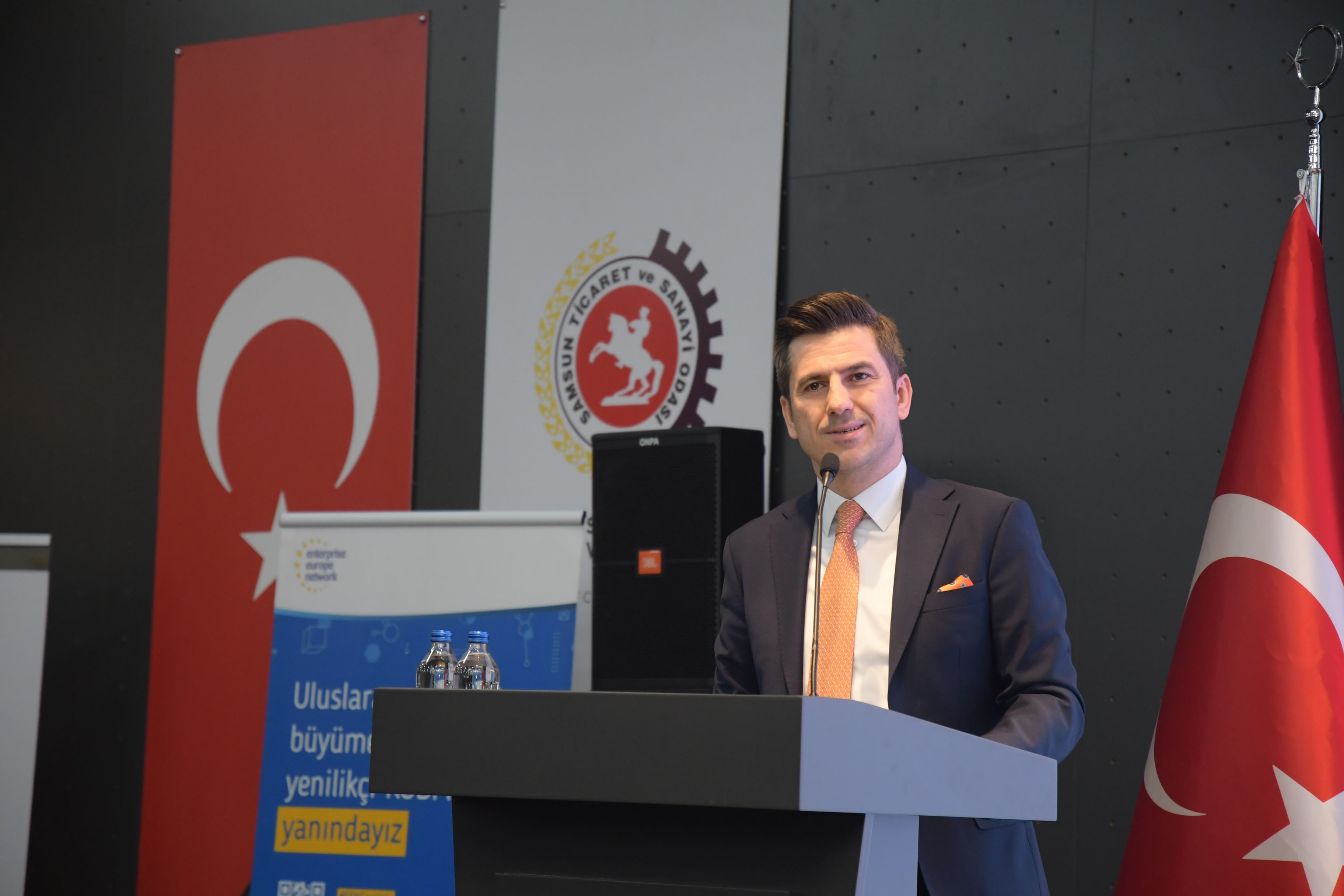 Karadeniz Hububat Bakliyat Yağlı Tohumlar ve Mamulleri İhracatçıları Birliği Yönetim Kurulu Başkanı Eren Günhan Ulusoy ise yaptığı konuşmada, ihracatın, ülke ekonomisi için lokomotif görevi gördüğüne vurgu yaparak, “Türkiye ancak üretim ve ihracatla büyüyerek kalkınma yolculuğunda arzu ettiğimiz seviyelere ulaşabilecektir. Samsun, başta otomotiv, hububat, su ürünleri, çelik, elektrik ve elektronik sektörleri olmak üzere yıllık yaklaşık 1,6 milyar dolar ihracat gerçekleştiren önemli bir ihracat kenti konumunda yer almaktadır. İhracatçılarımızın son dönemdeki ortak sorunlarının en önemlilerinden birisinin finansmana erişimde yaşanan zorluklar olduğu bilinen bir gerçektir. Geçtiğimiz yıl 423 farklı firmanın ihracat yaptığı ve bundan daha yüksek bir potansiyel barındırdığına inandığımız Samsun ilinden gerçekleştirilen ihracatın daha üst seviyelere yükseltilebilmesi için, İhracatı Geliştirme A.Ş.’nin firmalarımızın finansmana erişimlerini kolaylaştırmaya yönelik hizmetlerini çok değerli ve faydalı buluyor, tüm ihracatçılarımızı İGE’nin sunduğu finansman çözümlerinden yararlanmaya davet ediyorum’’ diye ifade etti.