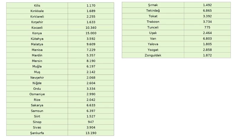 Yüzyılın Konut Projesi olarak ifade edilen 81 ilde inşa edilecek 500 bin konutun hangi ilde ne kadar sayıda olacağı belli oldu.