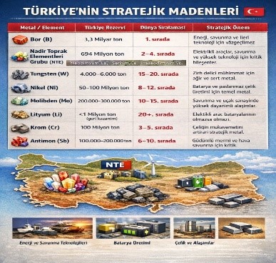 Bor tarafı Türkiye’nin en net avantajı. Bu maden, sadece “çıkar-sat” kalemi değil; birçok sektörde performansı belirleyen temel girdilerden biri. Cam ve seramikte zaten biliniyor ama asıl kritik tarafı şurada: bor, dayanımı artıran özel malzemelerin, belirli savunma uygulamalarının ve enerji depolama çözümlerinin de kapısını açıyor. Yani bor, tek bir ürün değil; doğru yönetildiğinde farklı sektörlerde katma değer üreten bir “anahtar girdi”.
