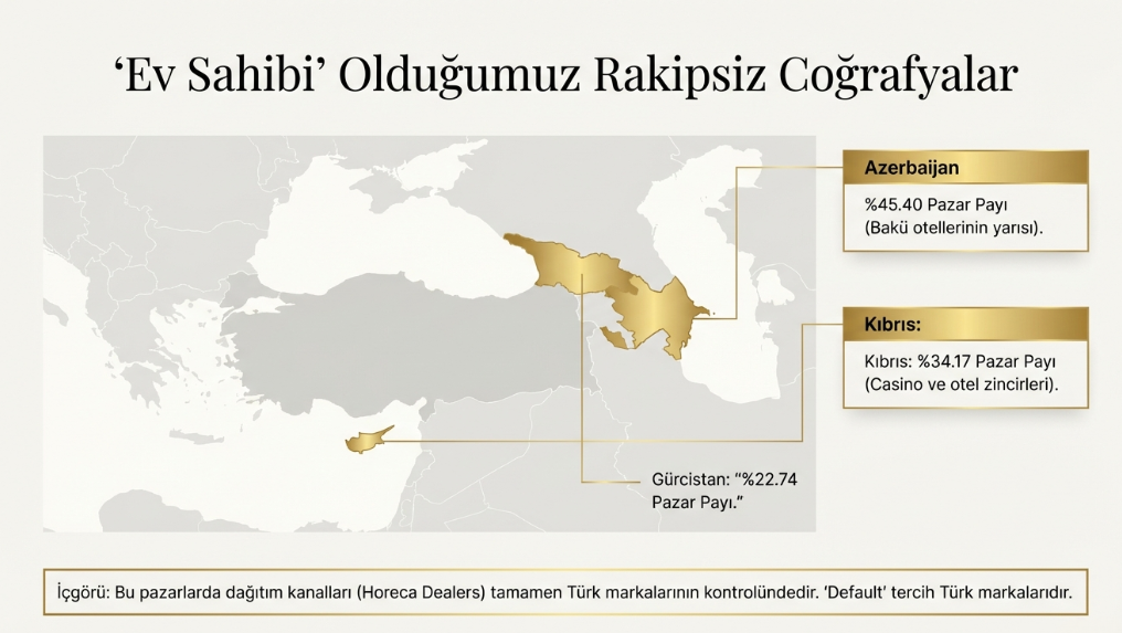 Bu pazarlarda dağıtım kanalları (Horeca Dealers) tamamen Türk markalarının kontrolünde.